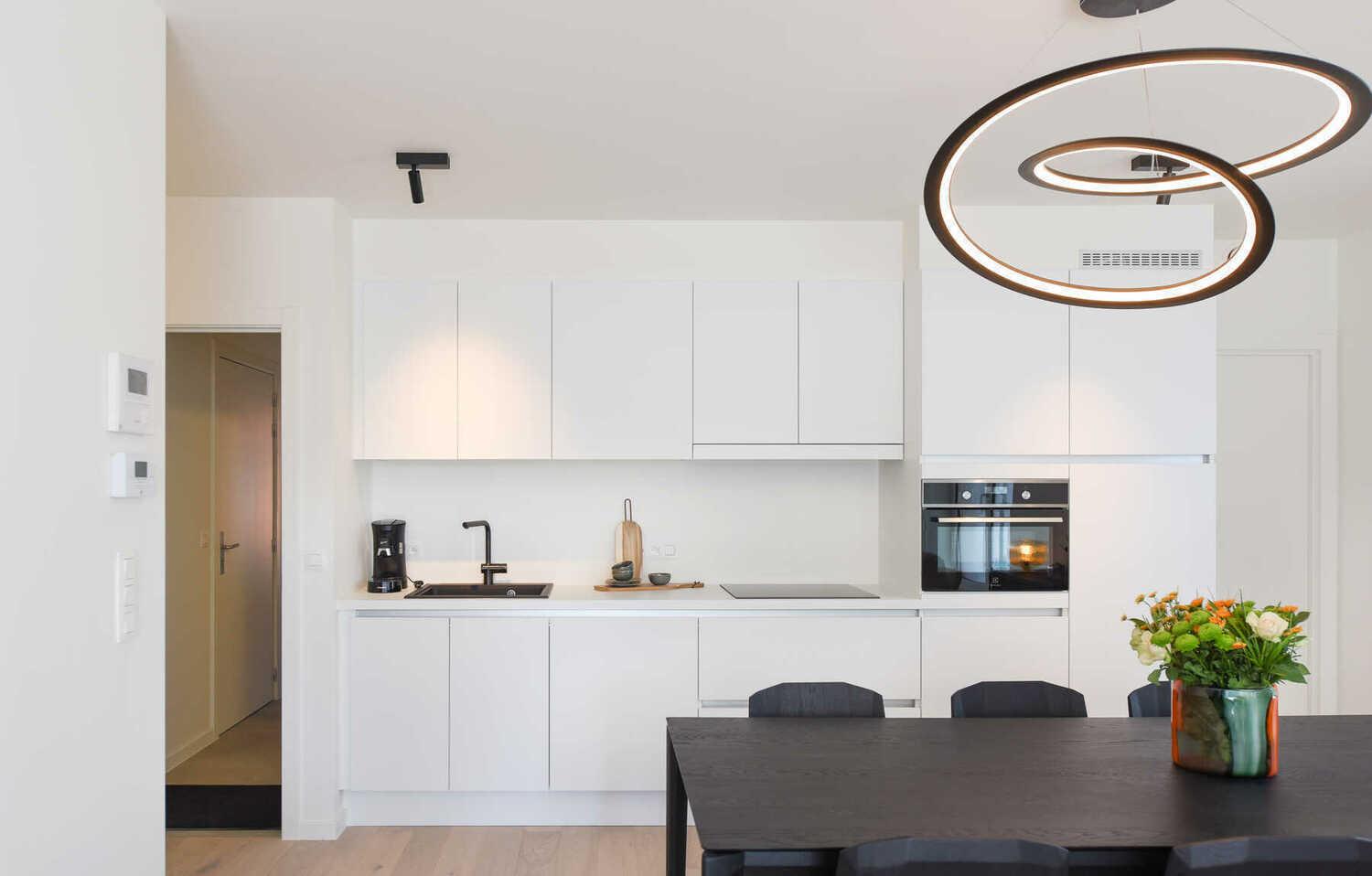Combined with the black accents of the spotlights, it creates a powerful contrast that radiates both serenity and luxury.